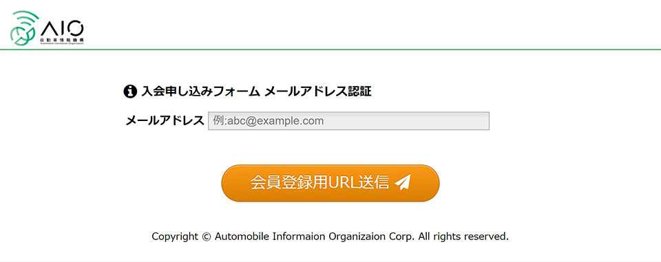 メールに記載の「会員登録用URL」より、フォーム画面へアクセスします。